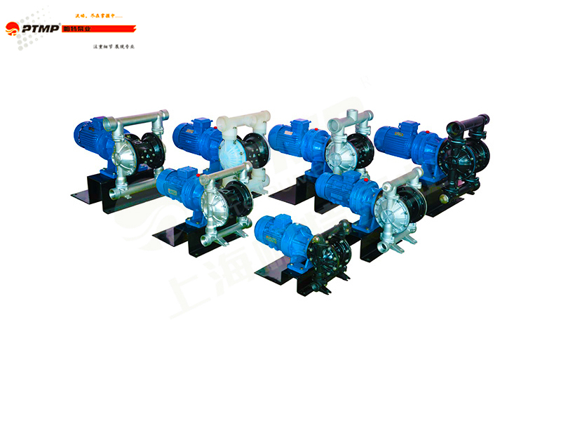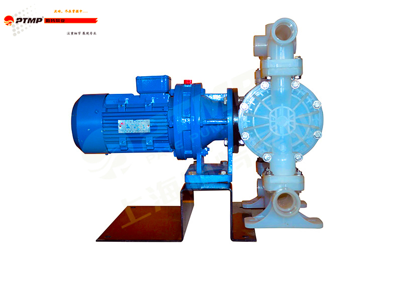 電機通過減速箱帶動左右兩端柱塞上面的隔膜一前一后往復運動。在左右兩個泵腔內,裝有上下四個單向球閥,隔膜的運動,造成工程腔內的容積的改變,迫使四個單向球閥交替地開啟和關閉,從而將液體不斷地吸入和排出。